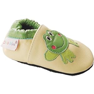 Product Description : Size: 0-6 Months | Color: GreenFrog shoes 0-6 months Size: 0-6 months Frog Shoes by Bibi and Mimi Bibi & Mimi Frog Shoes are created with love and handcrafted from the softest natural leather of the highest quality. Soft-soled shoes are recommended by pediatricians around the world for the healthy development of baby feet. Bibi & Mimi shoes create freedom of movement and help feet to flex while offering a protective and comfortable layer. Feature: -Frog Shoes in Green. -Part of the Frog collection. -Leather upper material. -Suede sole material. -Expandable ankle feature insures they are easy to slip on. -Available in Green (Frog Green).